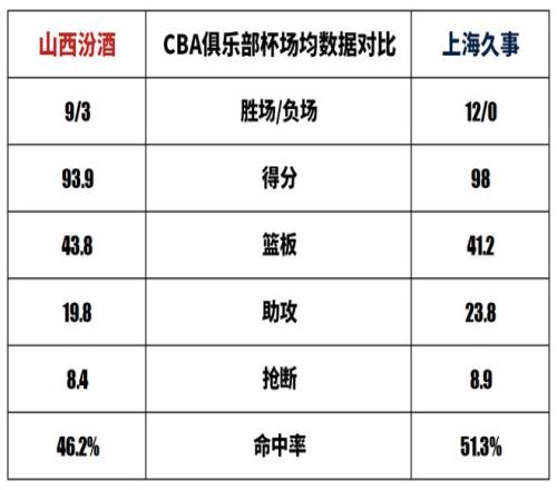 山西汾酒与上海久事在CBA俱乐部杯历史上共交手1次,山西汾酒0胜1负;两队在CBA联赛历史上共交手45次,山西汾酒21胜24负,本赛季两队交手1次,山西汾酒0胜1负。