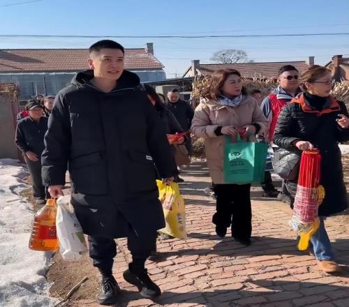 但是正能量满满的杨鸣,还是忙里偷闲去了一趟辽宁铁岭千户镇,带着米面油等生活必需品,看望了行动不便的留守老人,送上新春祝福!