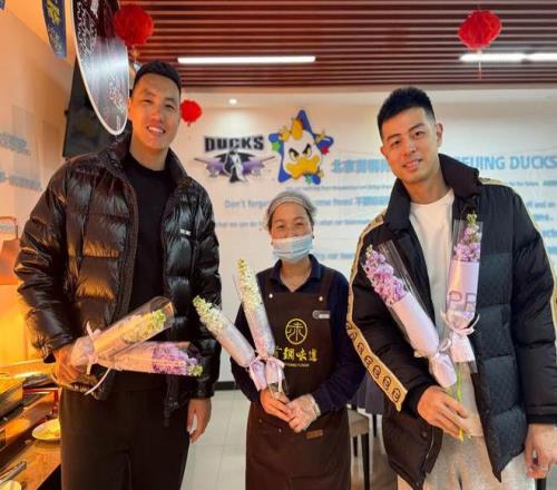 男篮队员翟晓川、方硕受全队委托,带着精心准备的鲜花,走遍俱乐部各个角落,将心意送到每一位服务球队的女性身边。无论是坚守岗位、用心烹制每一餐的餐厅服务员,默默耕耘、守护宿舍整洁的保洁阿姨,还是兢兢业业、全力保障球队运转的俱乐部女性工作者,都收到了这份特别的祝福。