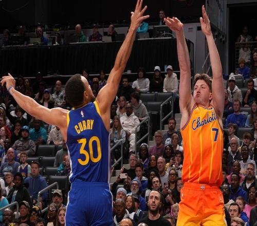 但他的表现我们都知道了,一度能够碾压状元弗拉格,领跑最佳新秀榜单。新秀第一年,克尼佩尔只用了18场比赛就扔进了63记三分,要知道库里用了40场。而命中100记三分,他用了29场,同样刷新NBA历史纪录。所以克尼佩尔的模板,也被视为库里。更有媒体表示,克尼佩尔在未来是有可能超越库里的存在,因为他的防守比库里要出色。而今天,克尼佩尔对上了其模板,黄蜂队主场迎战金州勇士。很快,克尼佩尔就见识到,这位顶级超巨的能力。持球迎着防守,还能命中3+1。甚至不看篮筐的随手一抛,也能命中!什么是手感,这就是手感!