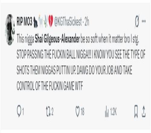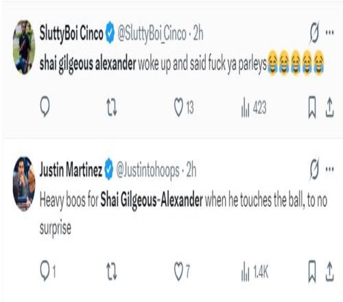 还有球迷朝着SGA喷脏话,甚至不满SGA在末节登场时一直传球,不敢出手投篮,希望他重新去掌控比赛。