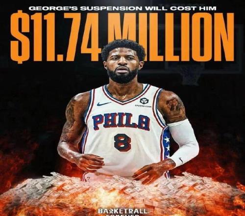 NBA官方宣布,76人队前锋保罗·乔治因违反联盟禁药政策,将被禁赛25场。