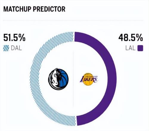 赛前,美媒ESPN对本场比赛进行了胜率预测,湖人队胜率意外仅有48.5% ,有点低了,独行侠胜率则高达51.5% 。