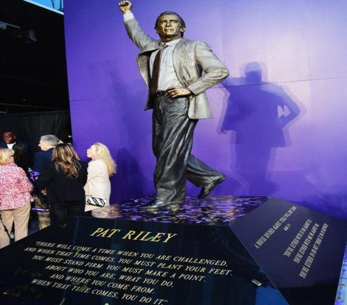 莱利在1981年至1990年执教湖人,带队在1982年、1985年、1987年和1988年四次夺得总冠军。他成为第八位拥有雕像的湖人传奇,此前获得雕像的是埃尔金·贝勒、科比·布莱恩特、奇克·赫恩、沙奎尔·奥尼尔、杰里·韦斯特、“魔术师”约翰逊和贾巴尔。