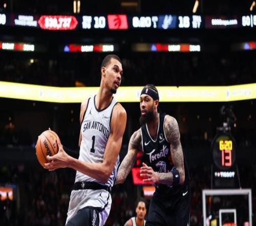 马刺处在连续征战5个客场的第二场,上一战客场击败东部第一的活塞。此战面对东部第五的猛龙,球队核心文班亚马手感冰凉,上半场4投0中,靠罚球得到4分。下半场他的手感依然很糟糕,但是防守一直在线。其中在全场比赛还剩43.9秒,当马刺仅以108比104领先的时候。猛龙发动快攻,珀尔特尔上篮,被文班亚马封盖并且直接将球拿在手里。