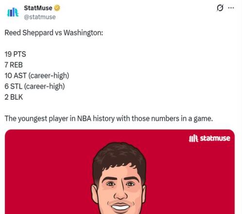 轰19分7板10助6断2帽全能数据,谢泼德一战连创4大纪录!首发出战时9战7胜三点原因成火箭队破局关键。