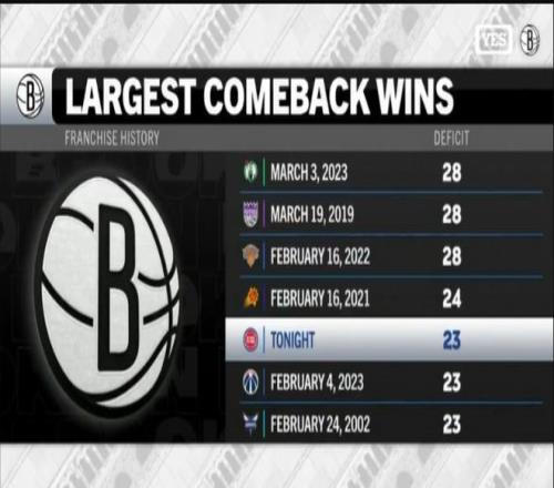 篮网也创造了2023年后队史最大逆转