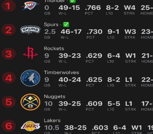 5连胜的森林狼今天输给魔术后,西部第3体验卡到期,40胜24负掉到西部第4,火箭39胜23负,以胜率优优势升到西部第3。