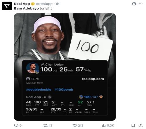 11.阿德巴约成为NBA历史第八位单场60+的中锋;