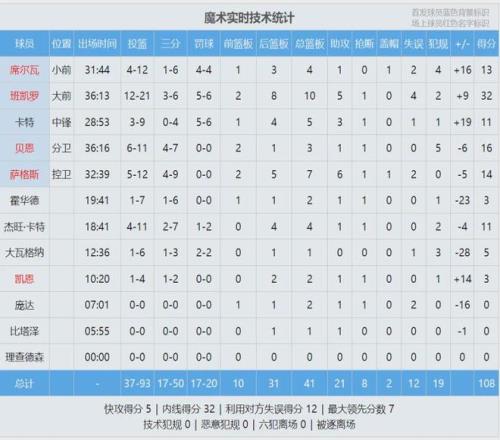 魔术状元班凯罗打了36分钟,投篮21中12,三分6中3,罚球6中5,砍下32分10篮板5助攻1抢断4失误,正负值+9。第四节班凯罗独得15分,依然无力回天。贝恩11投6中,拿到16分3篮板。霍二叔的儿子杰特-霍华德7中1仅得3分!
