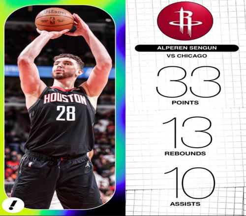 6.申京三次30+三双,队史中锋仅次于奥拉朱旺的5次;