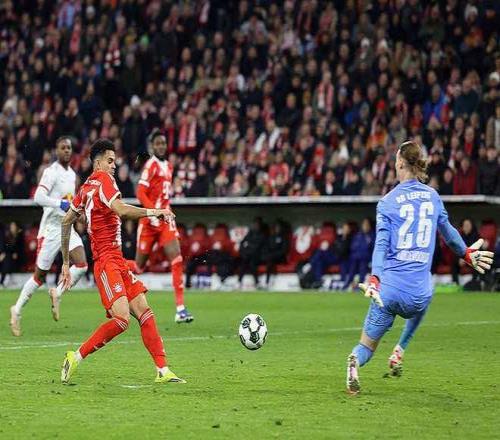 上半场,占据主动的拜仁创造出多次有威胁的进攻,好在莱比锡门将发挥出色,力保球门不失。半场战罢,两队战成0-0。下半场第64分钟,斯塔尼希奇造点,凯恩主罚命中,拜仁1-0莱比锡,仅仅过了4分钟,奥利塞精准传球,迪亚斯及时跟进推射破门,拜仁两球领先,此后,双方都没能再取得进球。最终拜仁2-0完胜莱比锡,晋级德国杯4强。