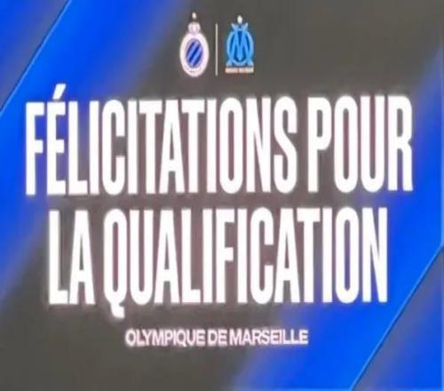 布鲁日赛后在大屏幕上祝贺马赛晋级,但最后时刻马赛被淘汰
