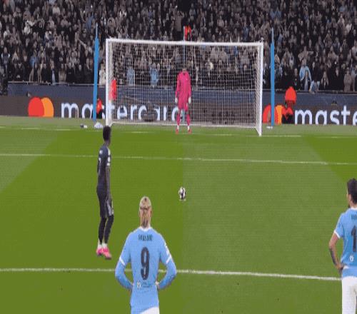 半场结束,两队战成1-1平,少打一人的曼城,依旧落后3球。下半场开始仅仅4分钟,哈兰德左右开弓,卢宁化解险情。