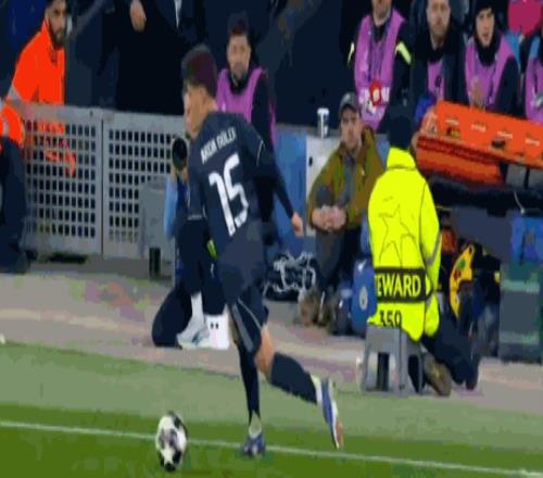 第45+3分钟,鲁本-迪亚斯踢倒居莱尔,引发小规模冲突
