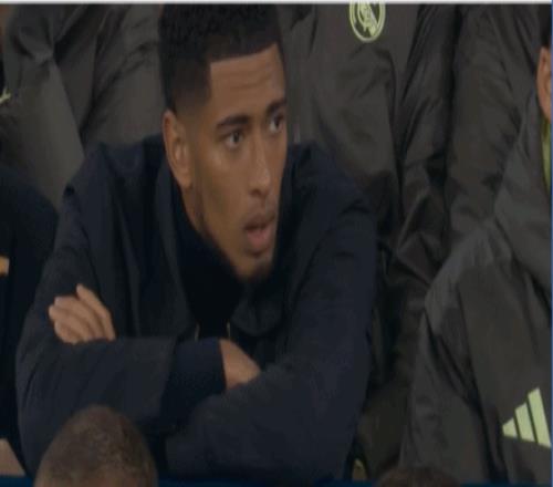 第15分钟,镜头给到了因伤缺阵的贝林厄姆和替补的姆巴佩