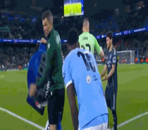 第46分钟,曼城下半场换人,格伊和阿克替补登场
