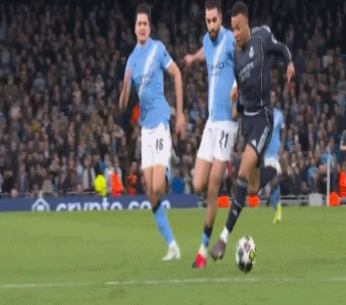 第26分钟,哈兰德极小角度低射被挡,罗德里补射高出