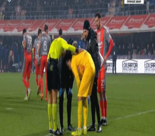 没错,热身阶段就有这些东西了。但这类情况我也遇到过,一开始没太在意。通常那些都是不会爆炸的冷焰火,现场看起来一切都在控制之中。比赛过程中我一直专注于场上局势,可当我转头时,突然看到脚边地上有个东西。我并不是这方面的专家,只是下意识地跟着场上进攻的节奏挪动了几步。其实当时我已经在向裁判示意了,刚迈出没几步,就传来了那声巨响。