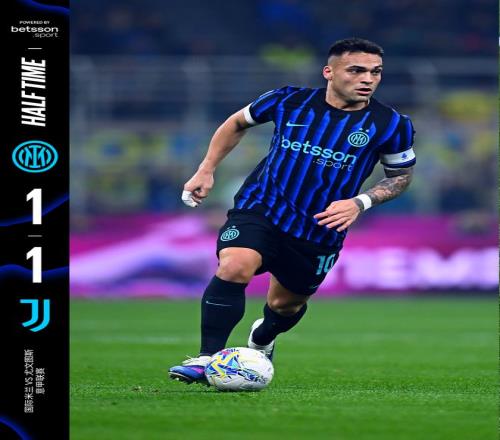 上半场比赛结束,我们和尤文图斯暂时战成1比1平。
