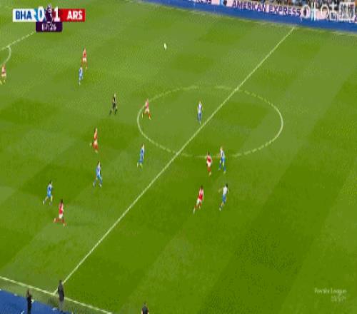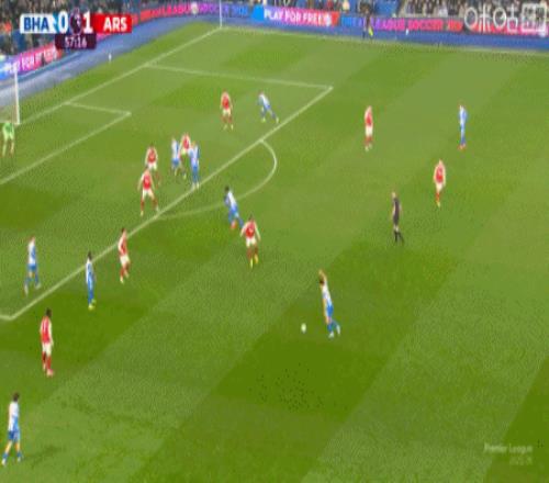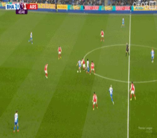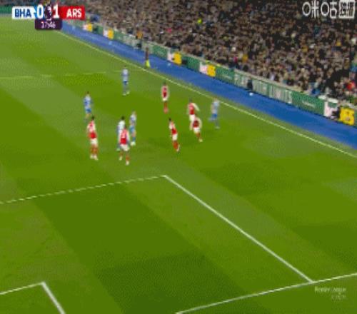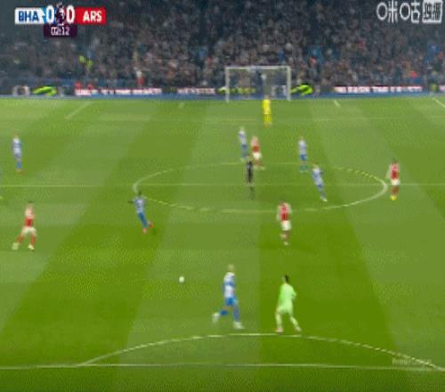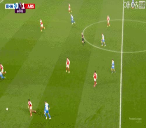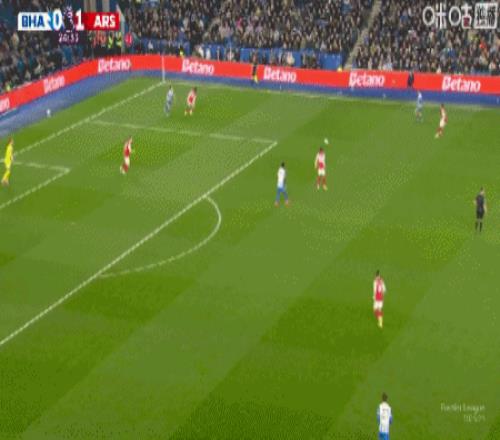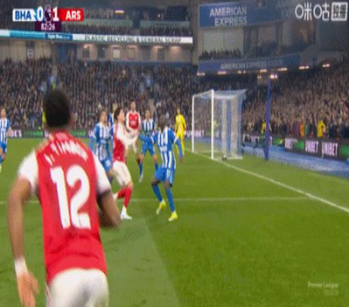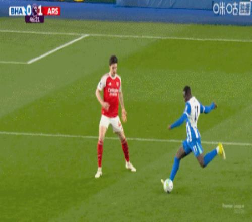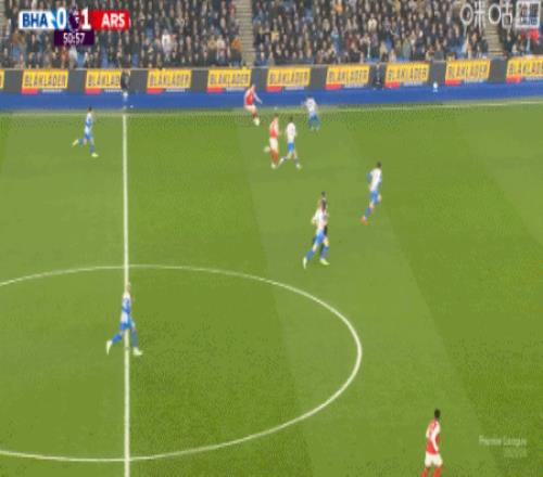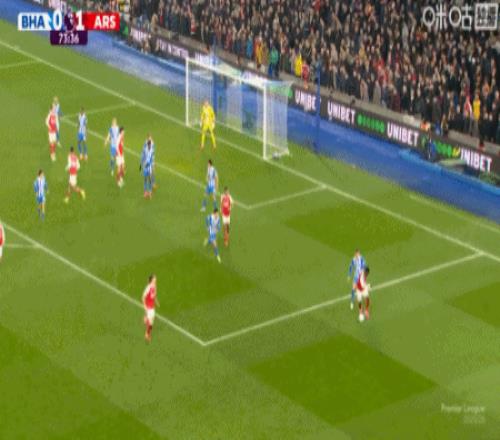 第9分钟,萨卡右路内切击中巴莱巴稍稍变线破门,阿森纳1-0布莱顿
