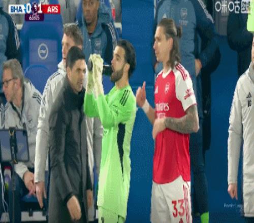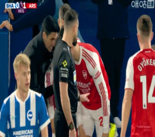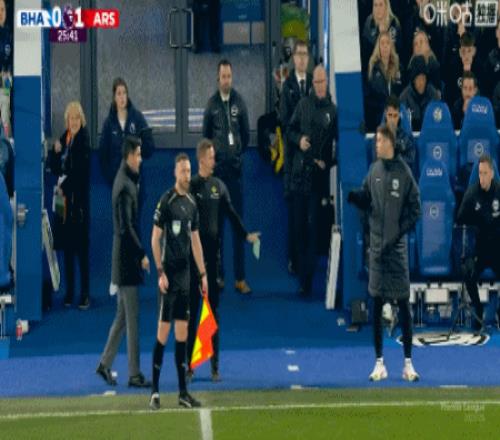 第26分钟,互相指责,阿尔特塔和许尔策勒场下言语冲突