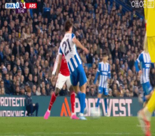 第25分钟,布莱顿快发任意球失误,皮球直接击中自家队友