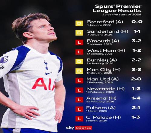 另外,2026年迄今热刺在英超未尝胜绩,11轮只拿到4分。未来9轮联赛热刺要对阵利物浦、阿斯顿维拉、切尔西三强,以及诺丁汉森林、狼队和利兹联3个明显已有起色的保级对手。与此同时热刺还在恋战欧冠,俱乐部似乎完全没有意识到降级大祸将至的严重性。