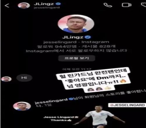 然后在前两轮联赛结束之后,也就是教练开始对他的表现有所不满的时候,一位号称“韩国卡戴珊“的网红在社交媒体上爆料,林加德在私信中和她联系,并且用韩文表示非常喜欢她的照片。