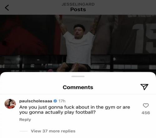 那个时候,很多曼联人都怒其不争,因为一点都看不出来林加德有多么着急,惹得斯科尔斯直接在他的动态下面留言:
