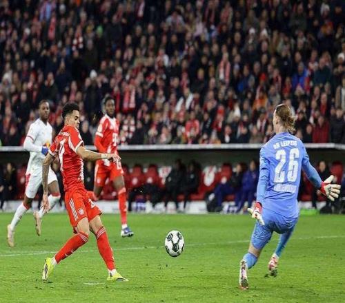 北京时间2月12日,德国杯1/4决赛,拜仁主场迎战莱比锡。比赛中。图源:视觉中国上半场,占据主动的拜仁创造出多次有...