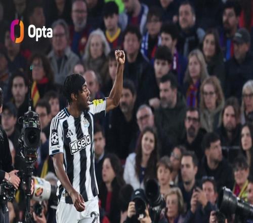 欧冠1/8决赛次回合,纽卡斯尔联客场对阵巴塞罗那,埃兰加在上半场打入两球,成为第二位代表英格兰球队在欧冠做客...