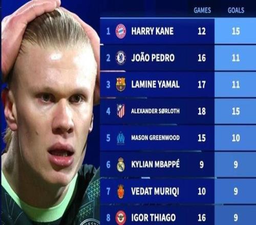 哈兰德2026年16场只打进4球,同期凯恩12场15球全欧第1