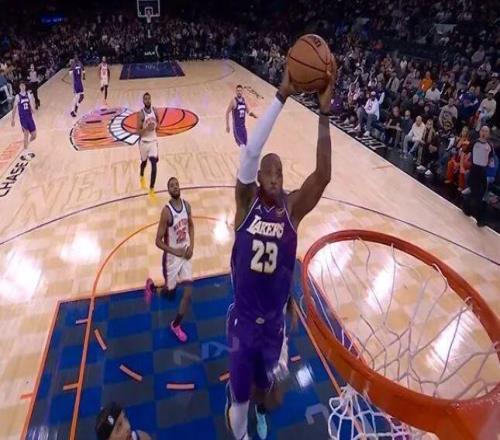湖人打尼克斯 詹姆斯又上演空接爆扣 41岁还能飞,真的逆天 慢动作 点击下方名片关注:贵圈真乱...
