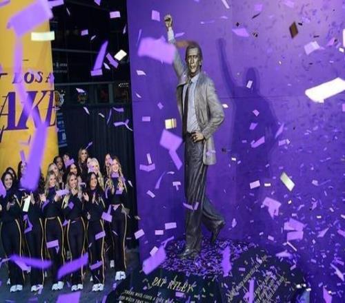 湖人为传奇前教练帕特莱利树立的雕像正式揭幕