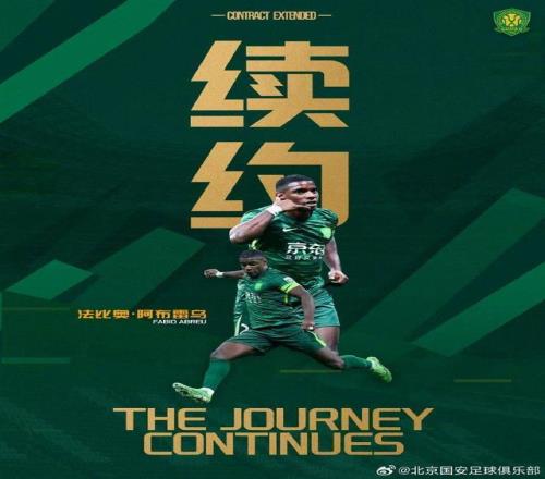 官方:北京国安与法比奥正式完成续约