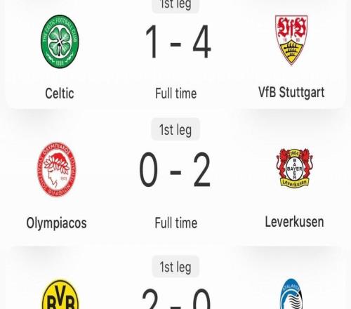 本周结束的欧战淘汰赛附加赛首回合,多特蒙德欧冠主场2-0击败亚特兰大,勒沃库森欧冠客场2-0战胜奥林匹亚科斯,斯...