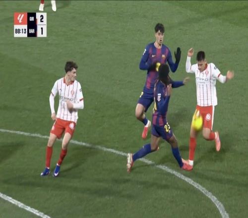 北京时间2月17日巴萨在客场1-2不敌赫罗纳,比赛第86分钟贝尔特兰打进绝杀球。在进球前,赫罗纳球员埃切韦里带球...