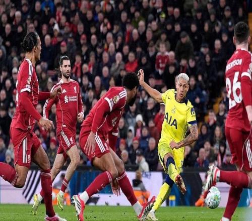 北京时间3月16日,英超第30轮,利物浦主场对热刺。比赛中。图源:视觉中国上半场第18分钟,索博斯洛伊直接任意球破...