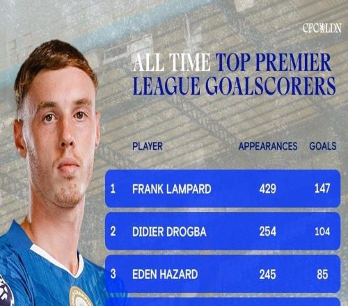 42球超越特里,帕尔默升至切尔西队史英超射手榜第八