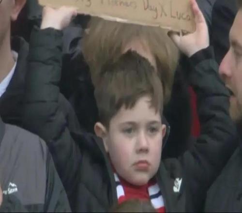 和母亲节冲突,小球迷举牌:抱歉妈妈,但我是首次现场看曼联