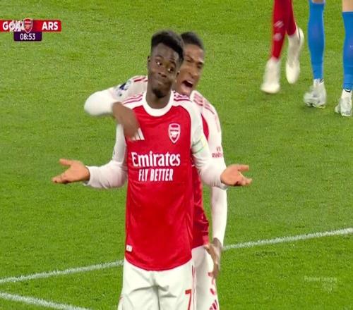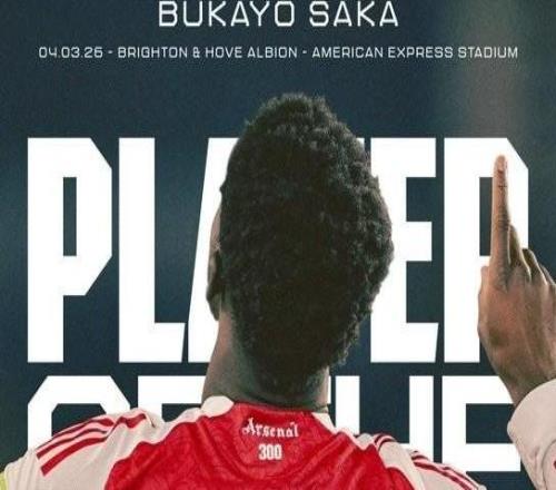 打入全场唯一进球,萨卡当选与布莱顿一役阿森纳队内最佳球员