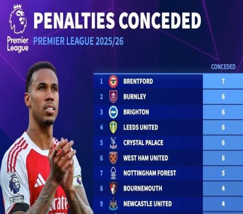 本赛季英超点球丢球榜:布伦特福德7球第1,阿森纳0球